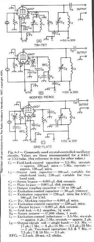 3 Basic Xtal Osc Schematics (6AG7)