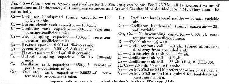 Parts List for VFO Schematics (6AG7)
